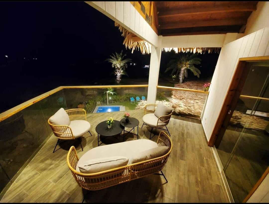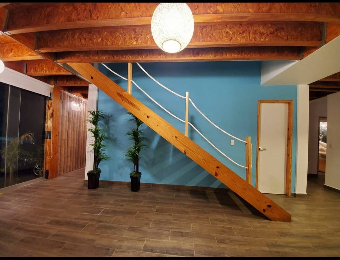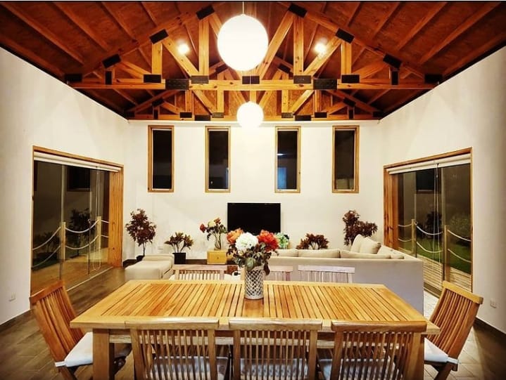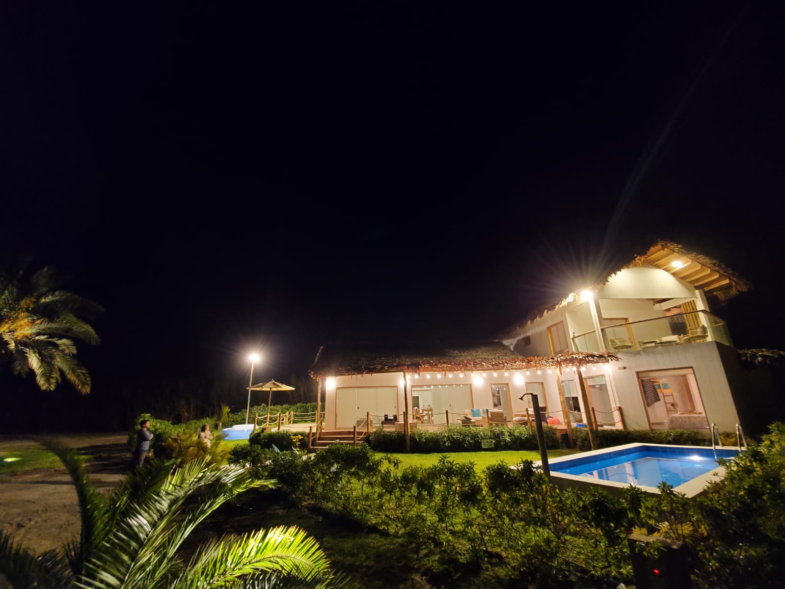 Esta residencia de dos niveles, de marcado estilo rústico, destaca por sus 7 habitaciones y amplias terrazas con pisos de madera natural. Sus techos en caña de bambú y Guayaquil aportan una estética cálida y costera que conecta con el entorno.