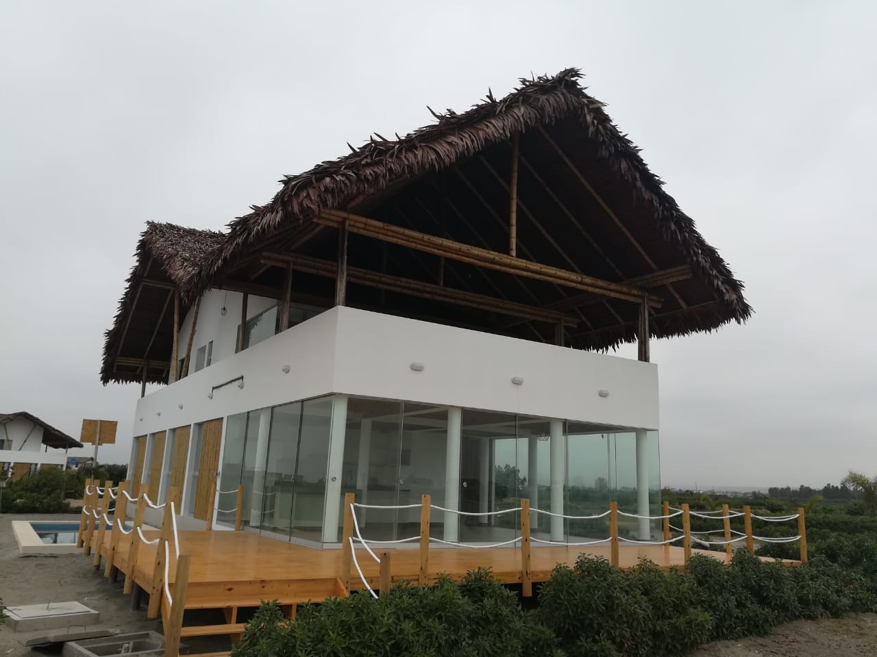 Esta residencia de dos niveles cuenta con 6 habitaciones, amplias terrazas exteriores con pisos de madera y un diseño estructural mixto de concreto y madera que garantiza solidez y calidez arquitectónica.