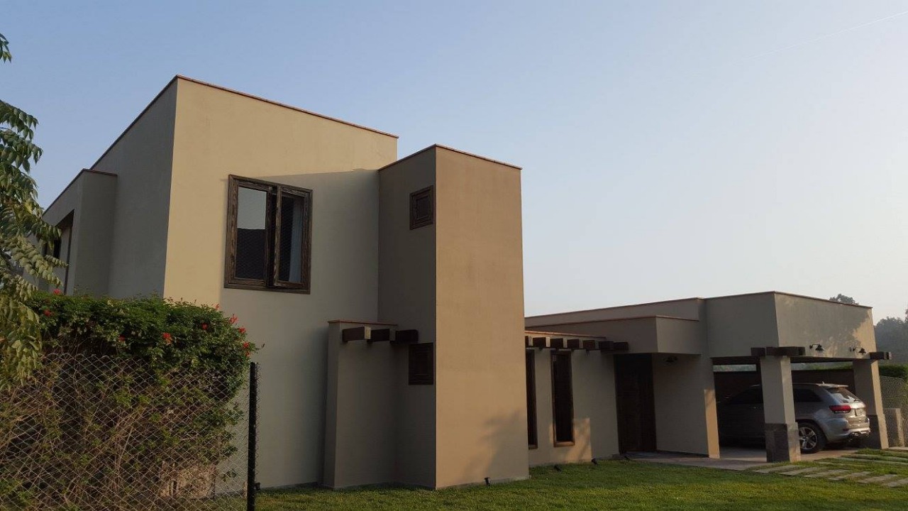 Ubicada en un entorno natural privilegiado, esta casa de campo de dos niveles combina estructura de concreto, metal y madera en una propuesta arquitectónica cálida y sólida.